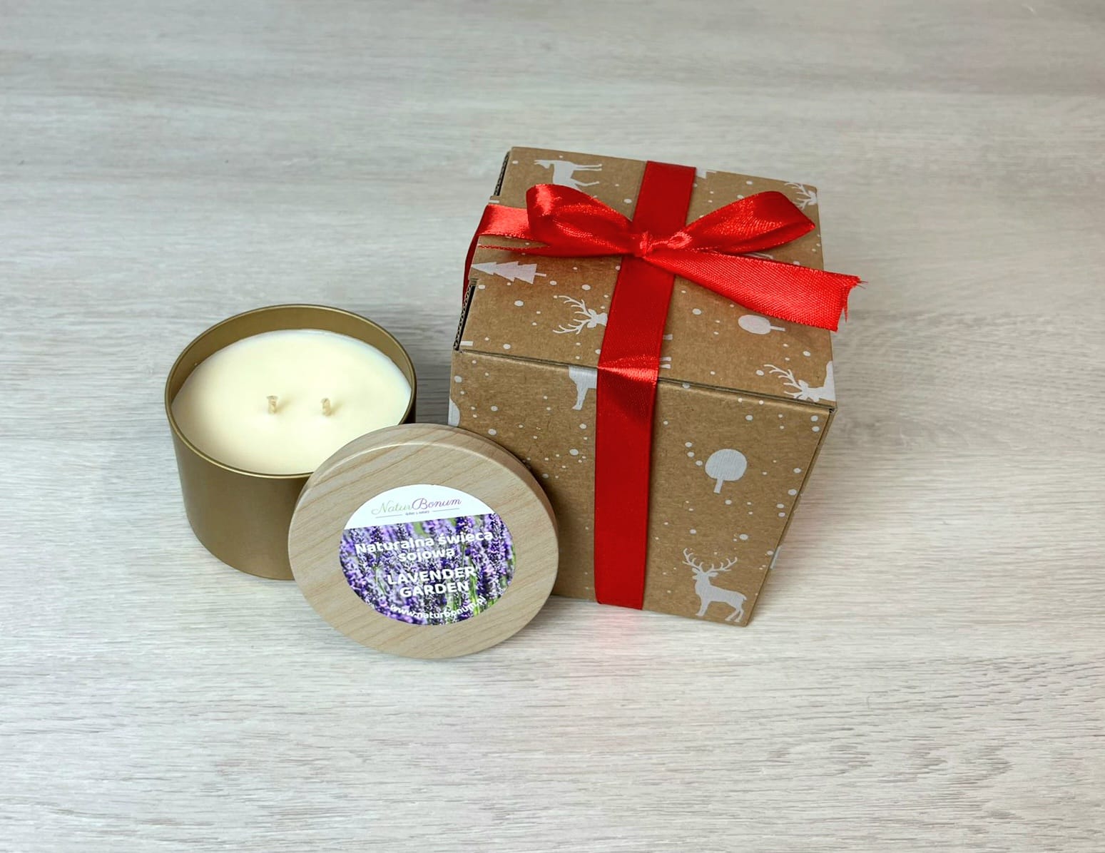 Naturalna świeca sojowa LAVENDER GARDEN w złotej puszce