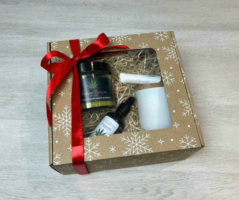 Zestaw Konopny krem konopny 200ml + świeca sojowa Lavender Garden 200ml biały mat + pomadka ochronna oliwkowa + olej konopny 50ml